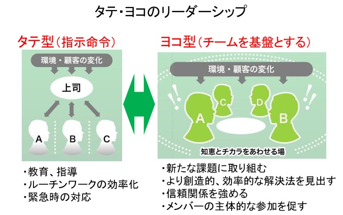 もちろん、メンバーの経験値が少ない場合や緊急時においては、「タテ型」のリーダ-シップを発揮する必要もあります。